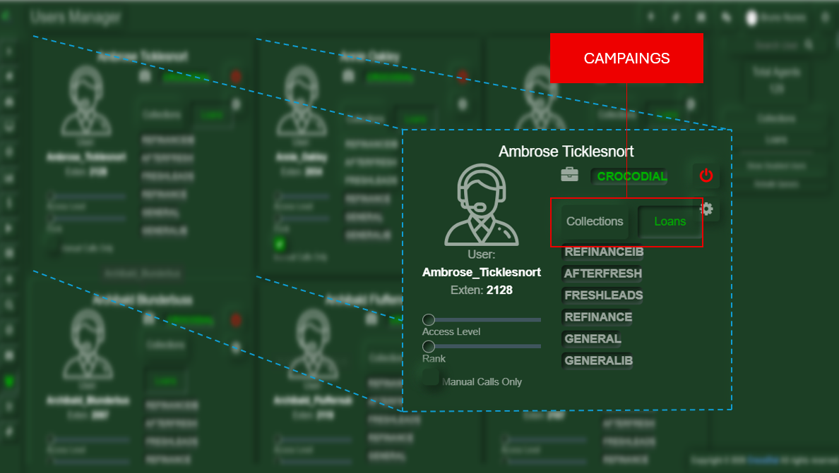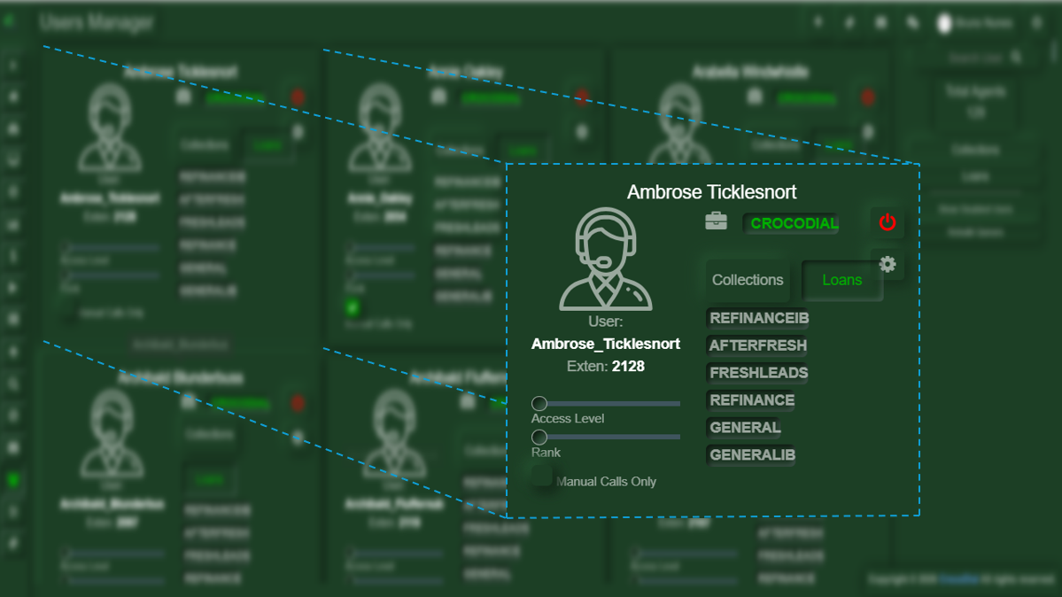 An Agent is an end user responsible for handling outbound interactions with leads. Agents operate through the dialing interface and are the primary execution layer of campaigns.