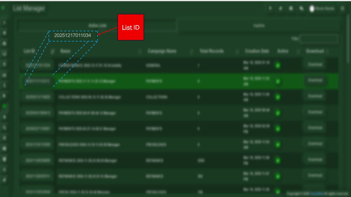 Leads are loaded into lists that are identified by a unique ID. It is important to note that calls will be received automatically, with a notification, as long as the user is in Available status. Since each list is associated with its corresponding ID, it will be linked to the campaign that has been assigned to the user.