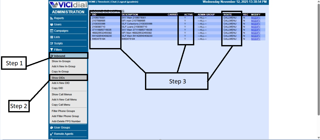 Now verify that the numbers you added appear correctly and that the DIDs are being processed properly.