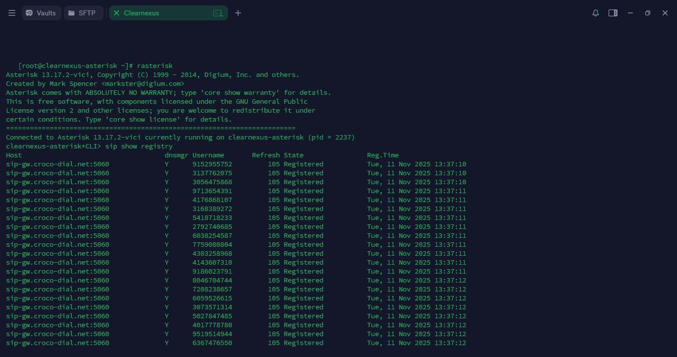 Once back at the main terminal, you will need to verify that the DIDs have been added correctly. To do this, you must access Asterisk by typing the following command in the terminal: